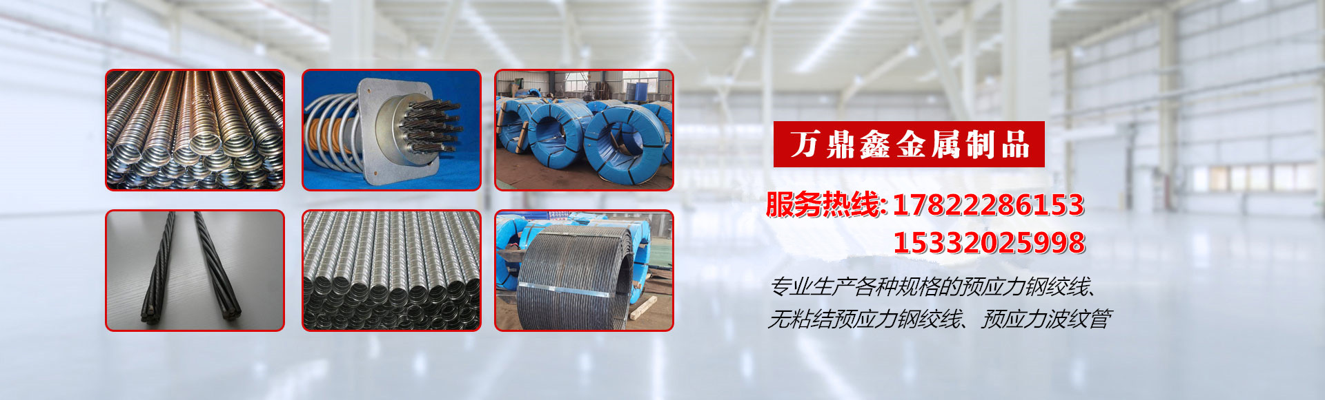 專業生產各種規格的預應力混凝土用鋼絞線、預應力鋼絲、無粘結預應力鋼絞線等。年生產能力10000噸